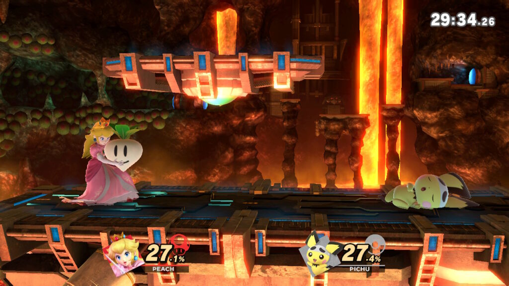 一方で、ピーチは復帰阻止、着地狩りに弱い、地上の機動力が低いといった短所があります。