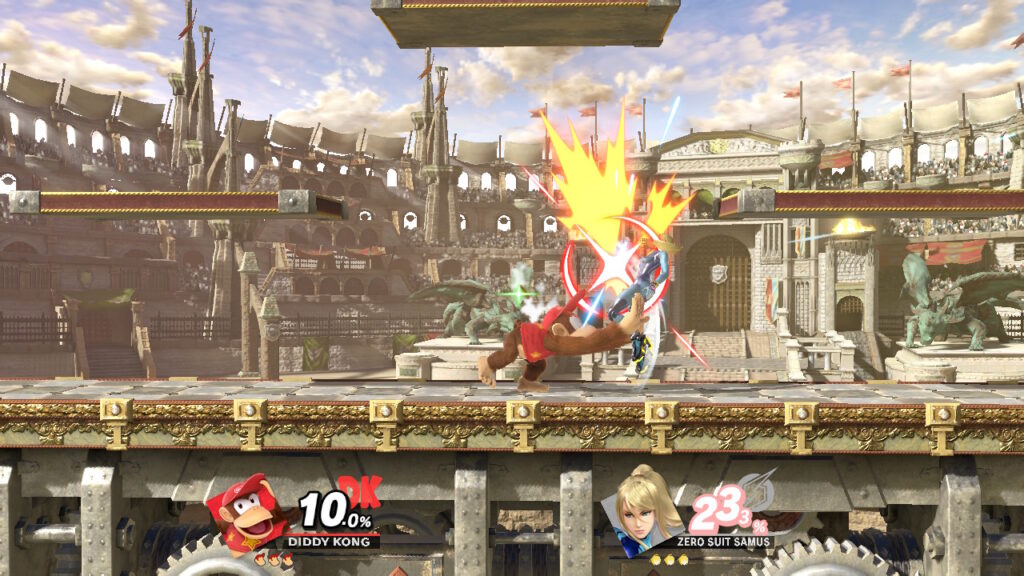 一方で、復帰手段が横必殺と上必殺に偏っているため行動を読まれると阻止されやすく、さらに単発での撃墜力が低いことから、バナナを絡めた連続攻撃や投げからの空下などを活用し、確実に撃墜へ繋げる立ち回りが求められます。